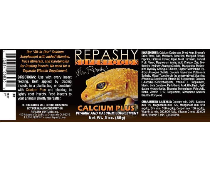Boost your feeder insects’ nutritional punch with the Repashy Superfoods Calcium Plus Reptile Supplement.